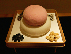 鏡開き 正月に供えた鏡餅を食します。一月十一日に行うのが通例です。鏡餅は刃物で切ることを忌み、手や槌で割ります。鏡餅は「切る」とはいわず、縁起を担いで「開く」と呼ぶ習わしがあります。砕いた餅をおしるこなどにしていただきます。